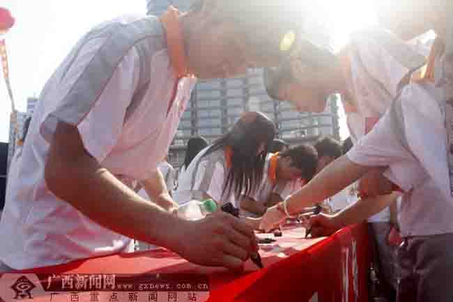 大學生在印有“拒絕盜版 助力創(chuàng)新”的條幅上簽名